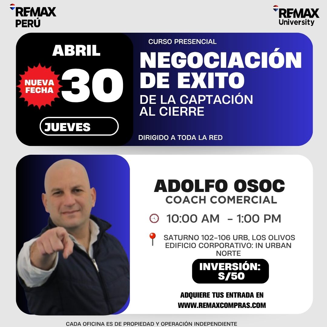 💼 Expositor:  Adolfo Osoc, Coach Comercial – CURSO ABIERTO A TODA LA RED