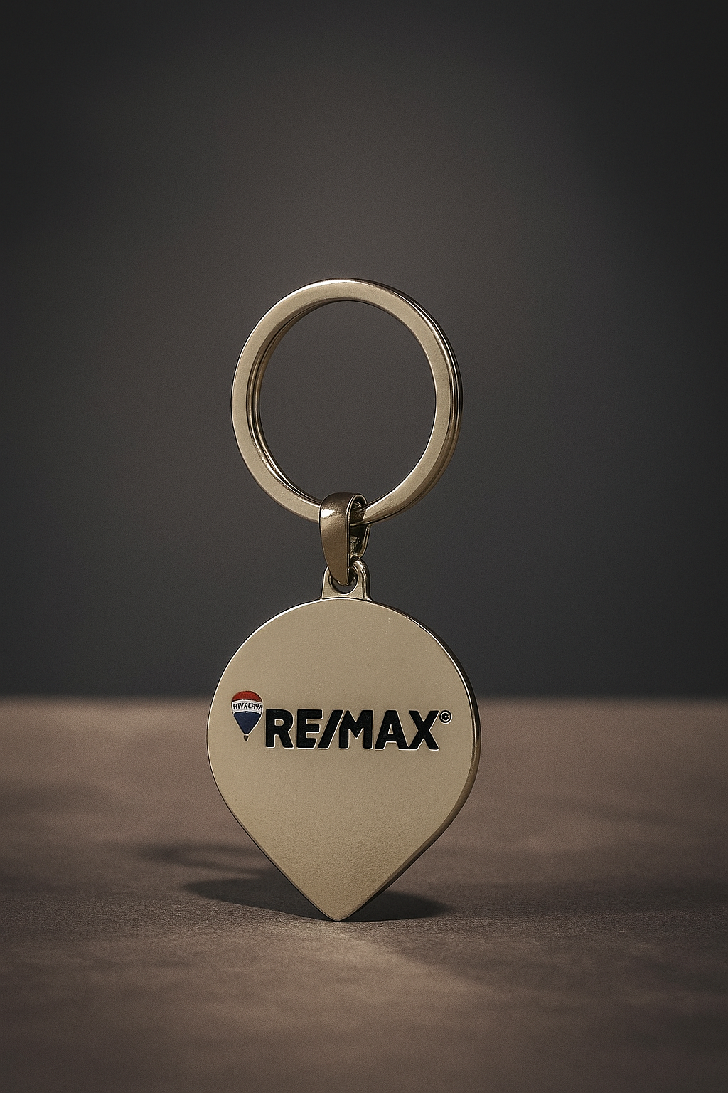 Llavero de metal modelo Globo nuevo logo,con letras al reves del globo